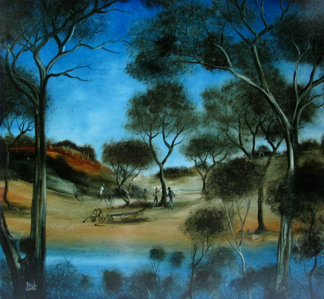 Kevin "Pro" Hart was born in Broken Hill in 1928. The mining backdrop of the town helped to fire his artistic imagination.