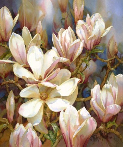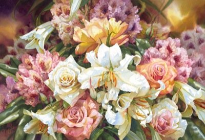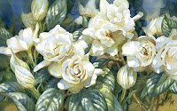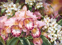 Whether painting roses in England or hibiscus in Tahiti, the final work of art gives the impression one can reach out and touch the flowers, which are always the feature, never the backdrop.